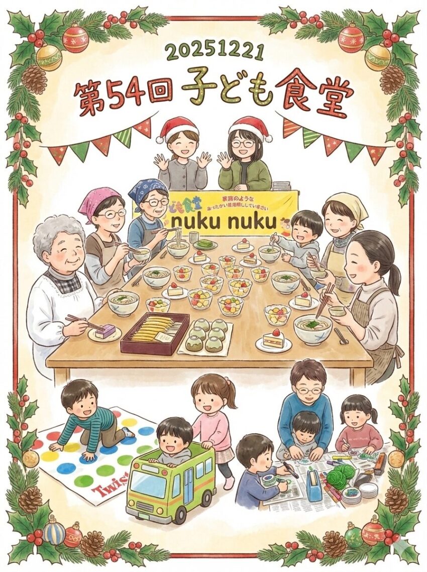 12月の寒さ厳しい中でしたが、今年最後の子ども食堂nukunukuにも、たくさんの子どもたちが元気に遊びに来てくれました。